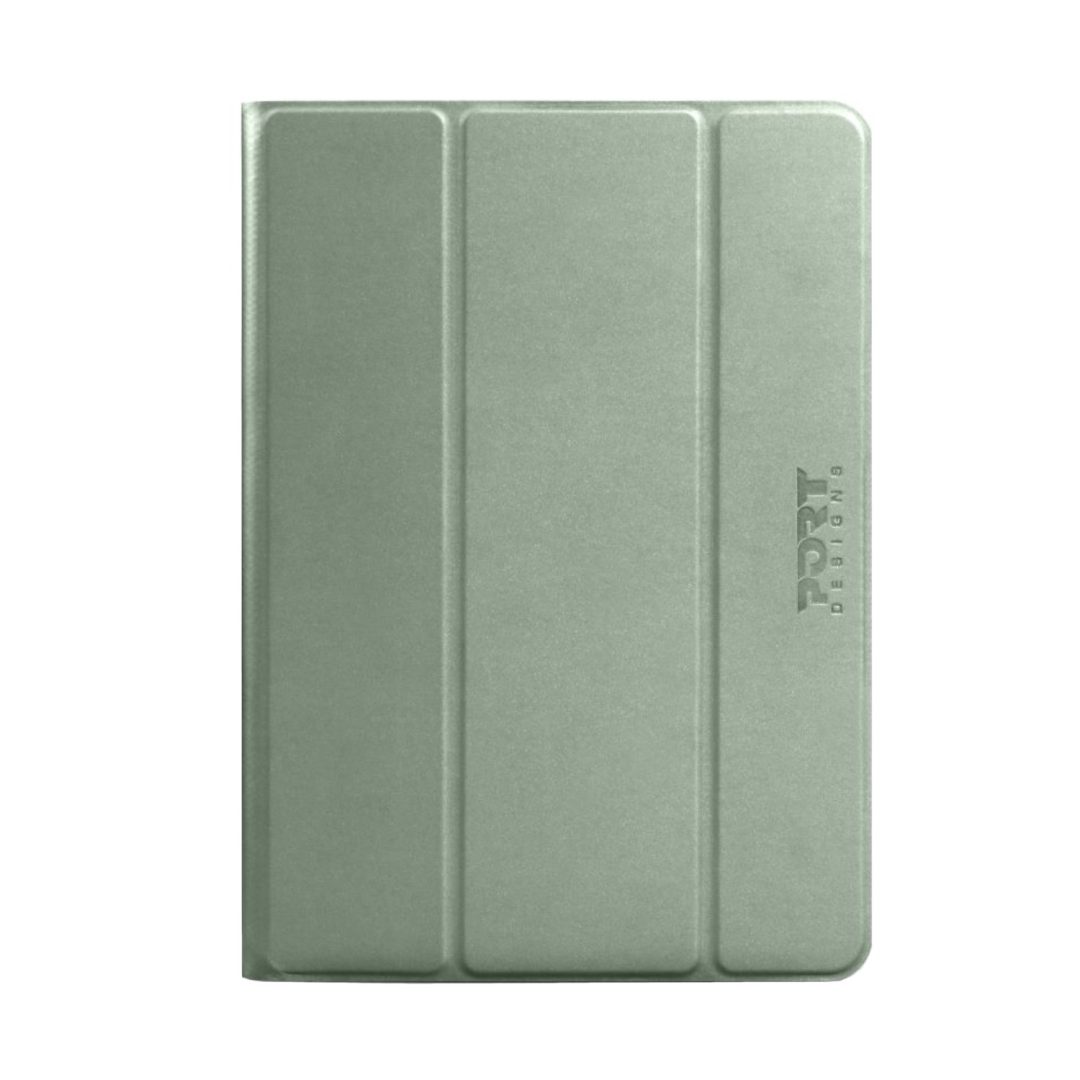 The folio design wraps the front and back of the tablet in protective cover material. The front flap folds back and converts into a stand, propping the tablet at a comfortable viewing or typing angle. Multiple stand positions let you find the right tilt for your setup. The Port Designs Noumea folio is available in this green finish as well as blue (201328) and grey (201326) colourways sold separately. All three colours share identical functionality and dimensions.